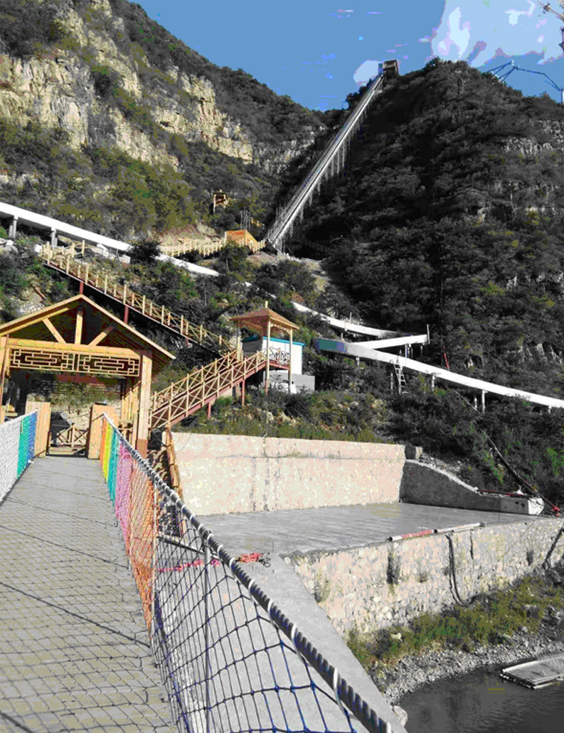 河北省淶水縣百里峽劉家河景區斜行觀光電梯,2017.4月開工建設運行230米,載重2噸,1部電梯,2018年8月運營;